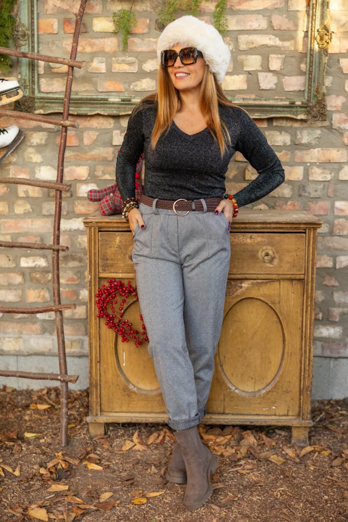 Csillogó, V-nyakú felső - fekete