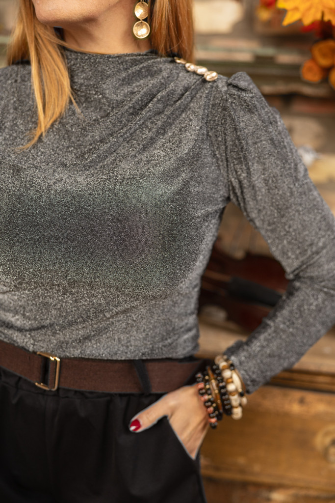 Díszgombos , csillogó felső - ezüst