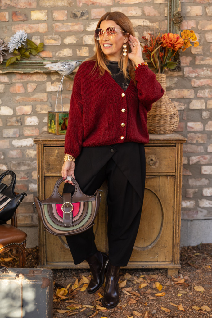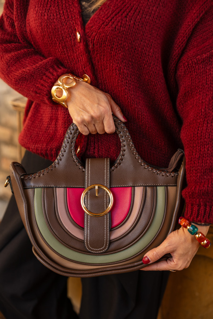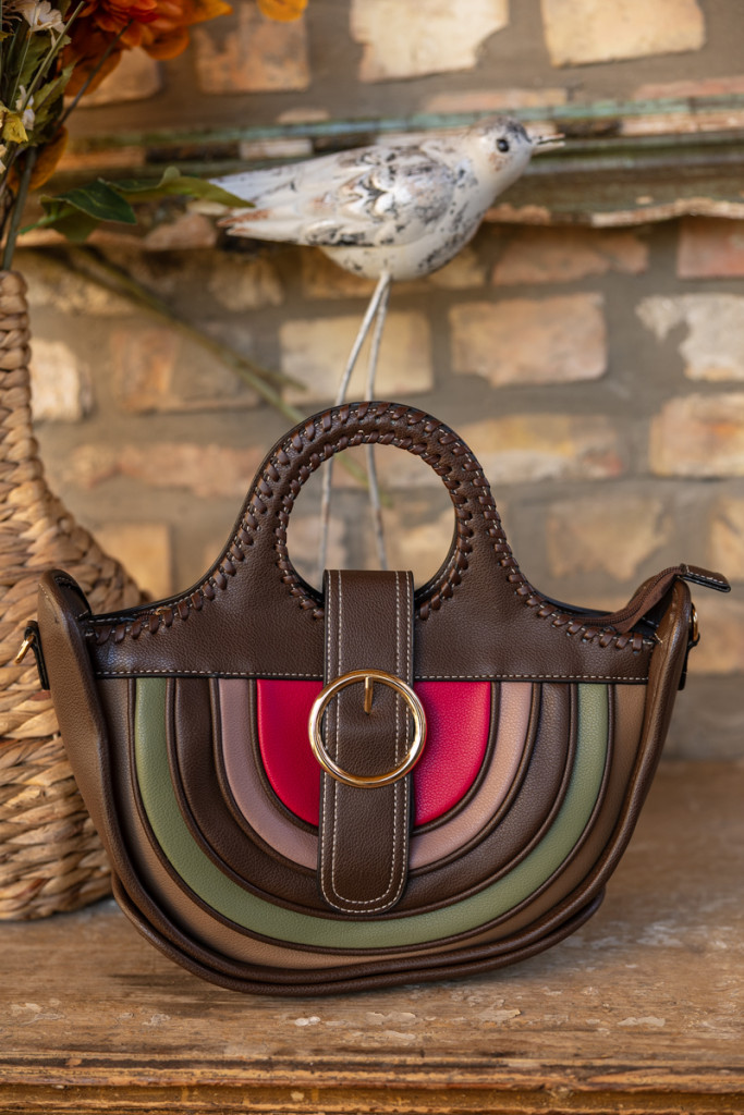 Félkör csatos táska - csoki/zöld/barna/bíbor