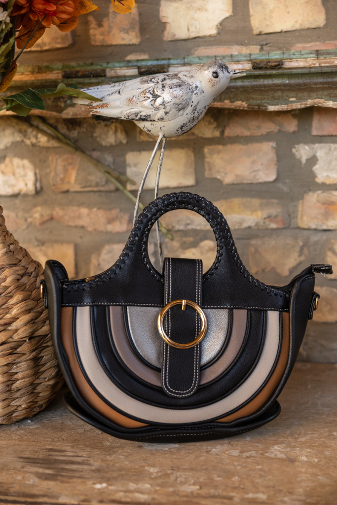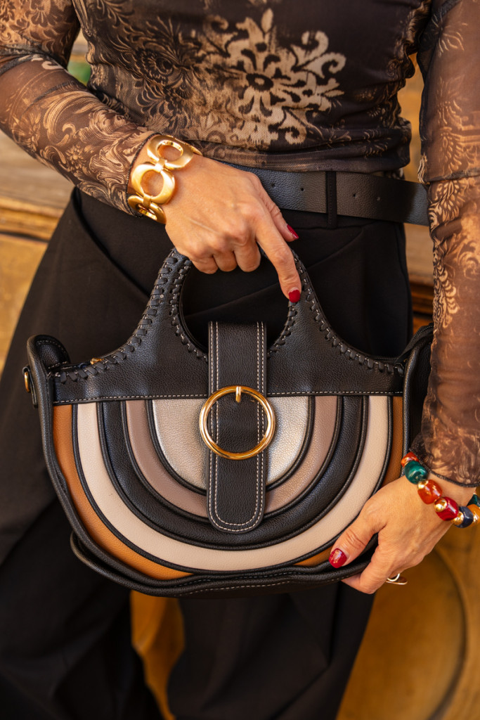Vásárold meg most Félkör csatos táska - fekete/barna/bézs/ezüst