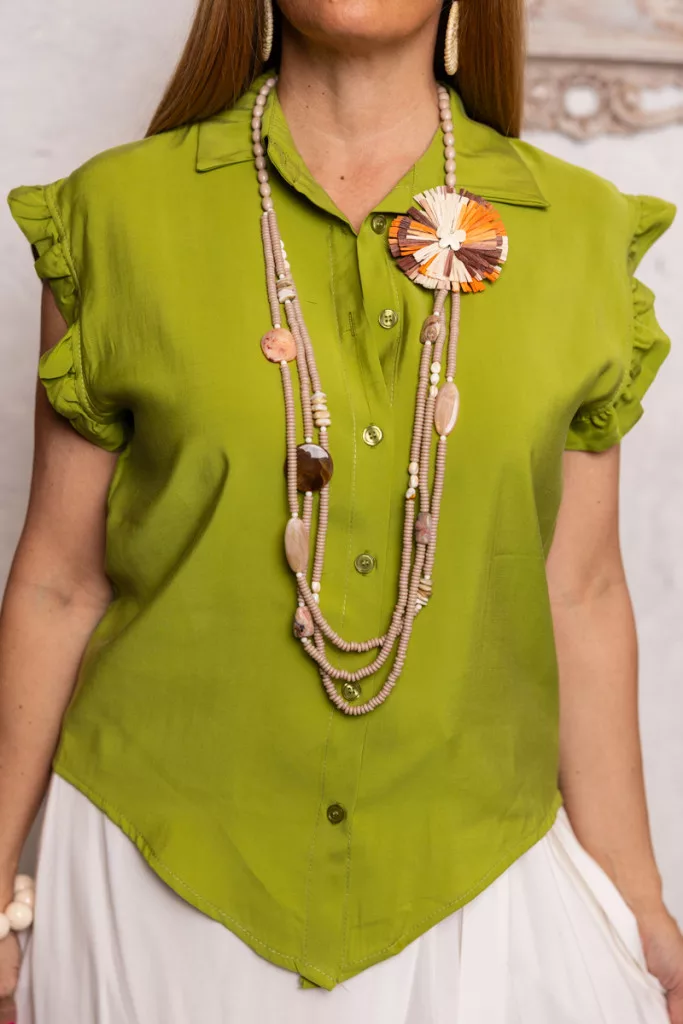 Fodros ujjú blúz - zöld