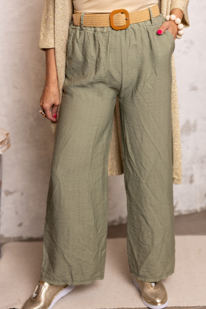 Fonott öves , bő szárú nadrág - khaki