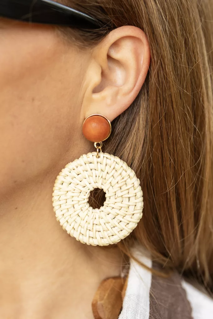 Kerek rattan fülbevaló - bézs