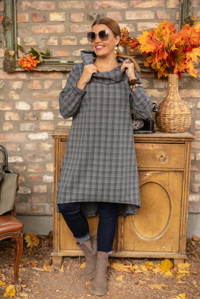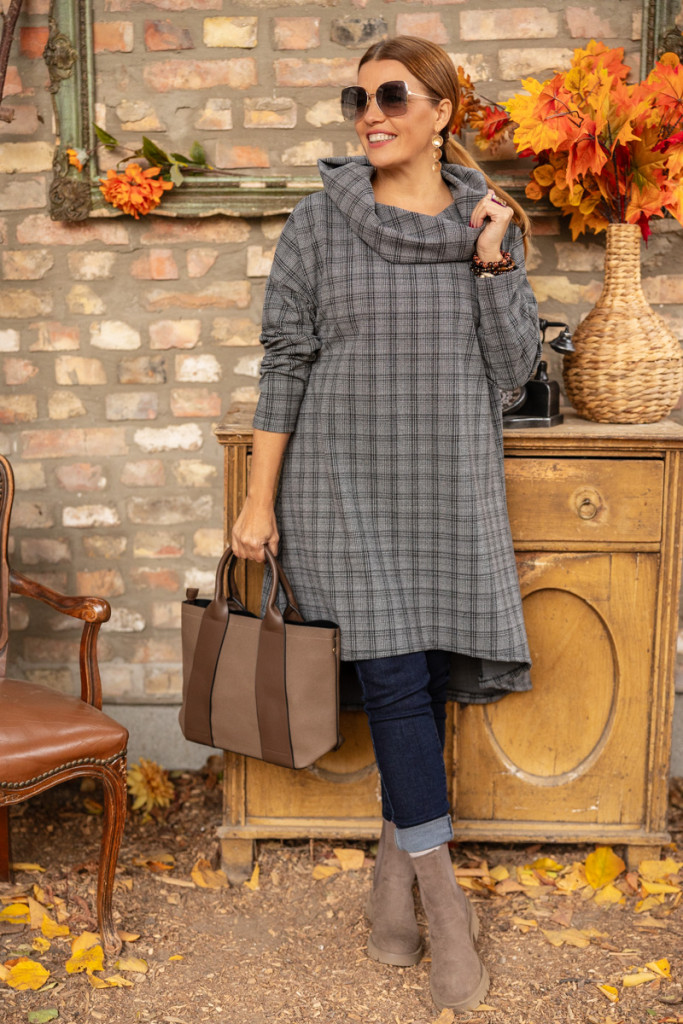 Kockás kámzsás tunika
