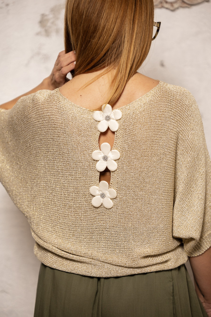 Vásárold meg most Kötött felső - hátán virág díszítéssel - arany