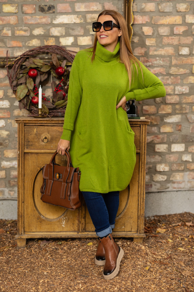 Vásárold meg most Kötött garbós ruha , zsebekkel - zöld
