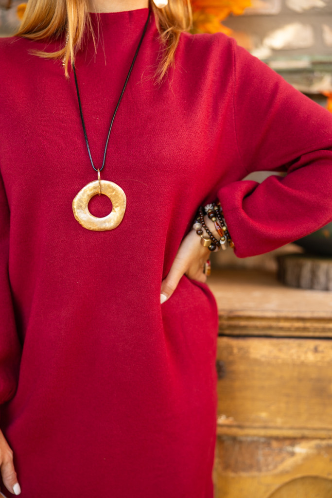 Vásárold meg most Kötött ruha , gumis ujjrésszel - bordó