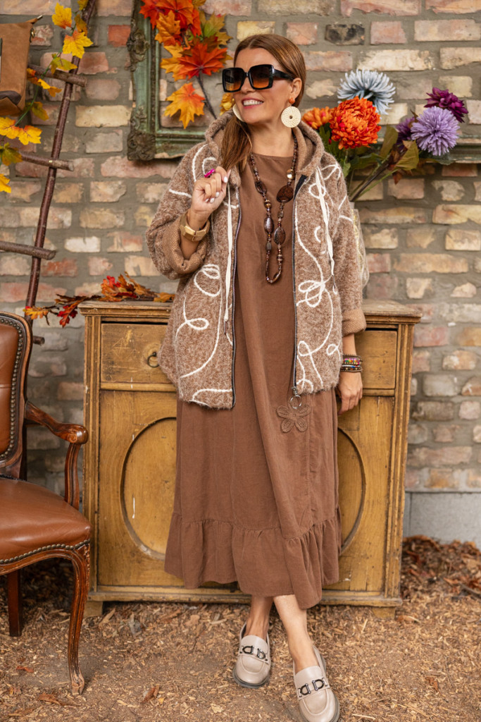 Mintázott buklé kabát - barna