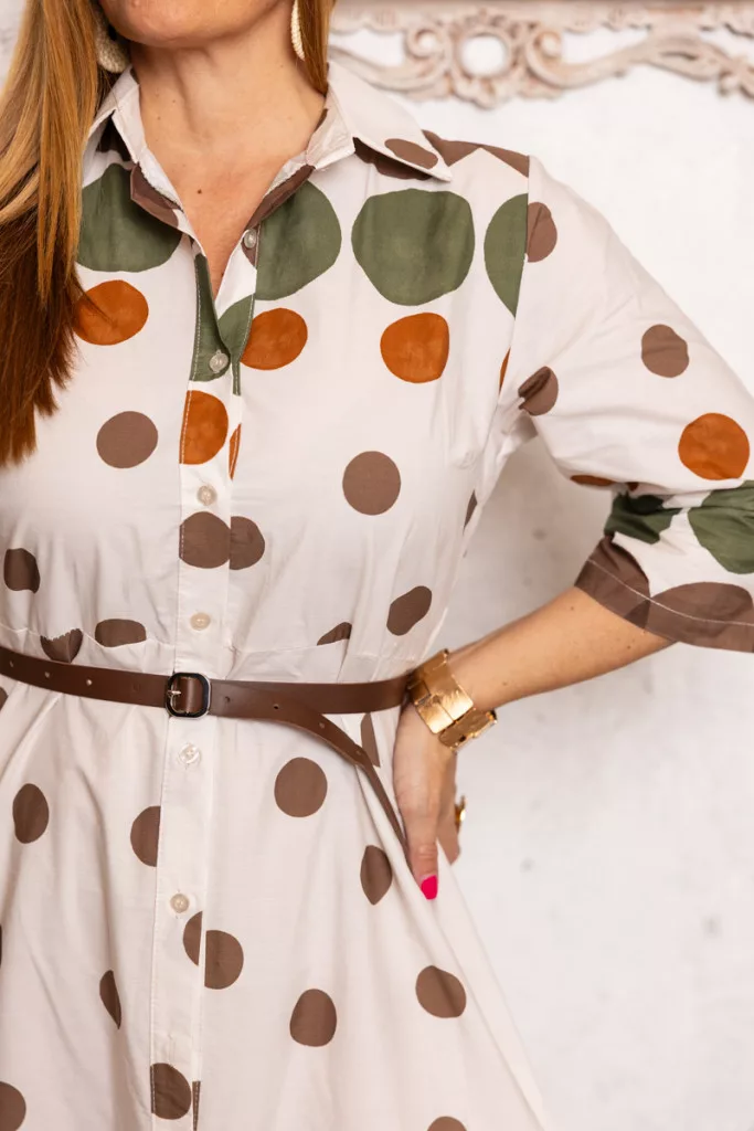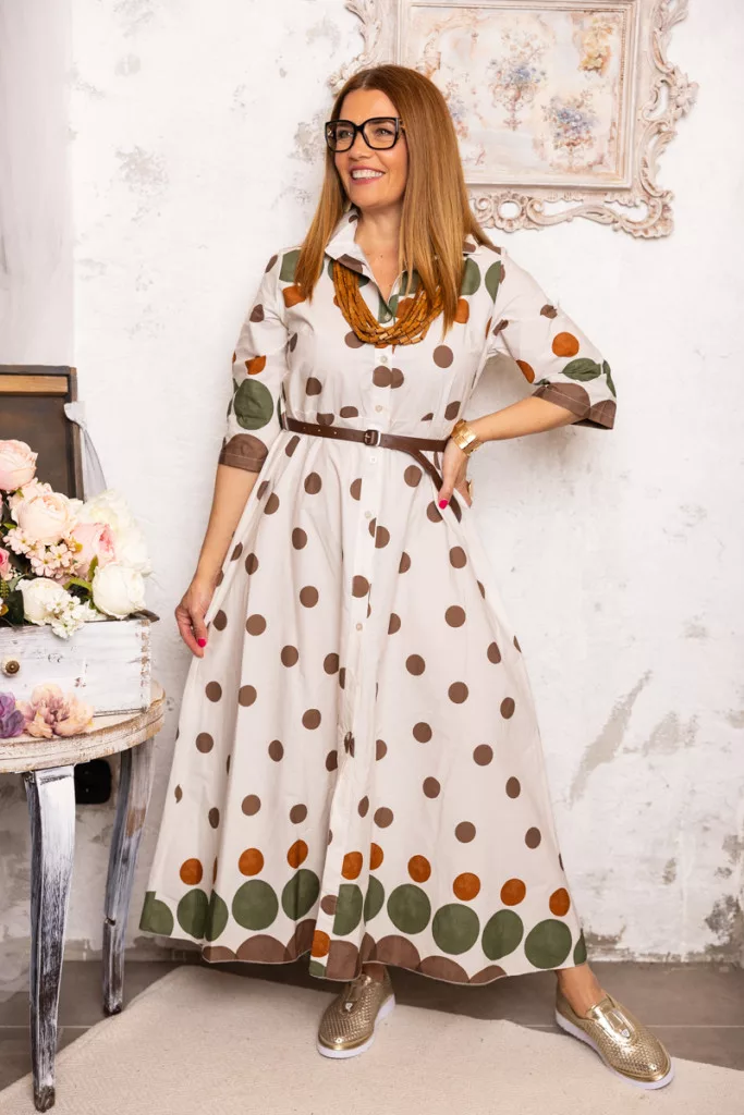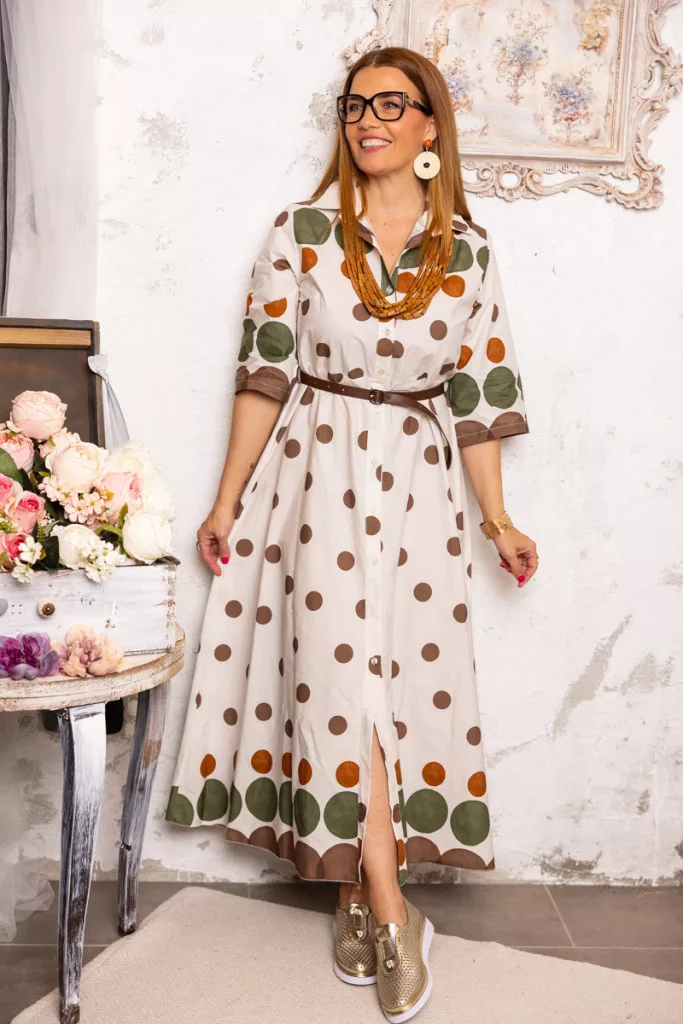 Pöttyös , öves maxi ruha - bézs/khaki/barna