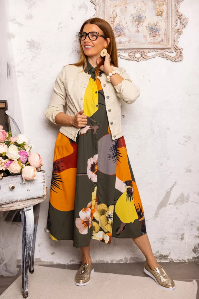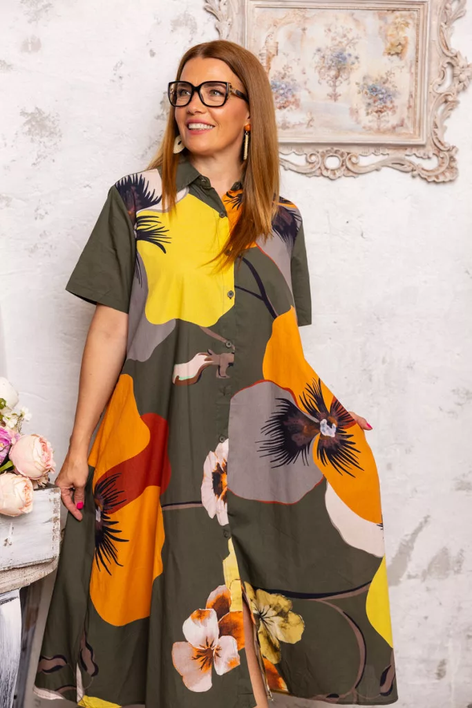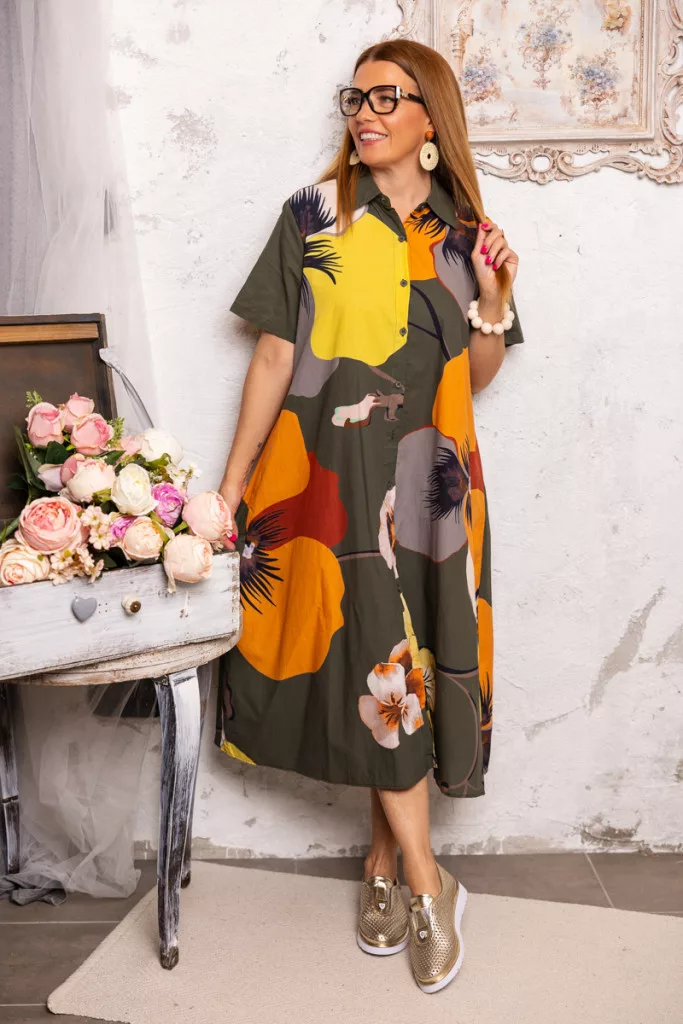 Nagyvirágos ingruha - khaki